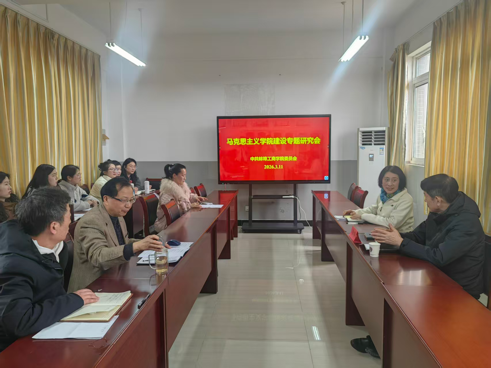 为深入推进马克思主义学院建设,切实提高思政课教学质量,2026年3月11日,中共蚌埠工商学院委员会召开马克思主义学院建设专题研究会。校党委书记、督导专员杨烨出席会议,马克思主义学院全体教师参加会议。会议由杨烨书记主持。
